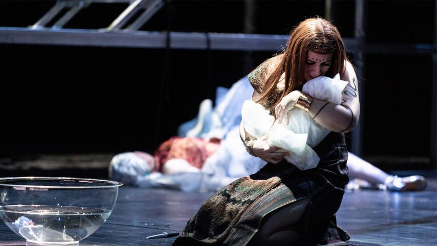 Dreimal an einem Tag werden die Kinder der griechischen Sagengestalt Medea auf offener Bühne ermordet. So geschehen im Stadttheater Hildesheim. Das dort beheimatete Theater für Niedersachsen (tfn) hat die Tragödie der als Kindsmörderin verfemten Medea mit Tanz, Oper und Schauspiel als thematische Trilogie in den Spielplan genommen.