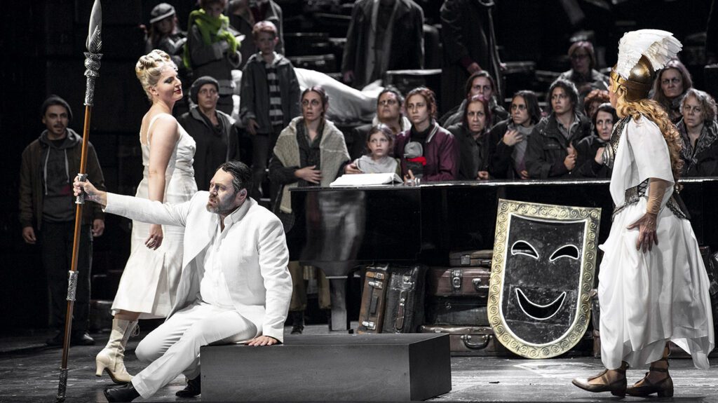 Librettistin Pauline Jacob und Dramaturgin Sina Dotzert schreiben und Kerstin Steeb inszeniert die kollektiven Blickwinkel des Produktionsteams. Gemeinsam kreieren sie einen Raum, der zwischen Selbstdefinitionen und Schicksalsschlägen so viel Repräsentation zulässt wie sonst nur wenige. „You Make Me Feel Like A Natural Woman“, so das Ziel des Abends und eine der musikalischen Nummern des Stückes – gesungen von Cymin Samawatie, musikalische Leiterin und Pianistin, und kunstvoll harmonisiert von Lisa Florentine Schmalz.