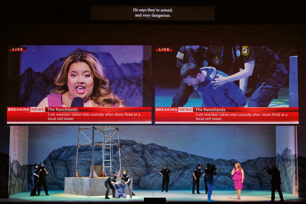 Ob die realitätsnahe Inszenierung mit dem sehr amerikanischen „Schulklasse- und Wohnhaus-Setting“ (Bühne: Adam Rigg) zur Akzeptanz beim Chicagoer Publikum beiträgt, kann man nur vermuten. Zumindest rief der Charakter der Nachrichtensprecherin im zweiten Teil – offensichtlich eine perfekte Imitation des Archetypen lokaler amerikanischer News-Stationen – zahlreiche spontane Lacher im Publikum hervor. Und auch die englische Sprache der Oper sei in dieser Hinsicht ein deutlicher Pluspunkt, erklärt Mangum. „Gerade, weil unsere Thematik – Isolation und Einsamkeit – sehr aktuell und unsere Inszenierung nah am Leben ist, möchten wir, dass die Menschen sich auch durch ,ihre‘ Sprache ein Stück weit abgeholt fühlen.“