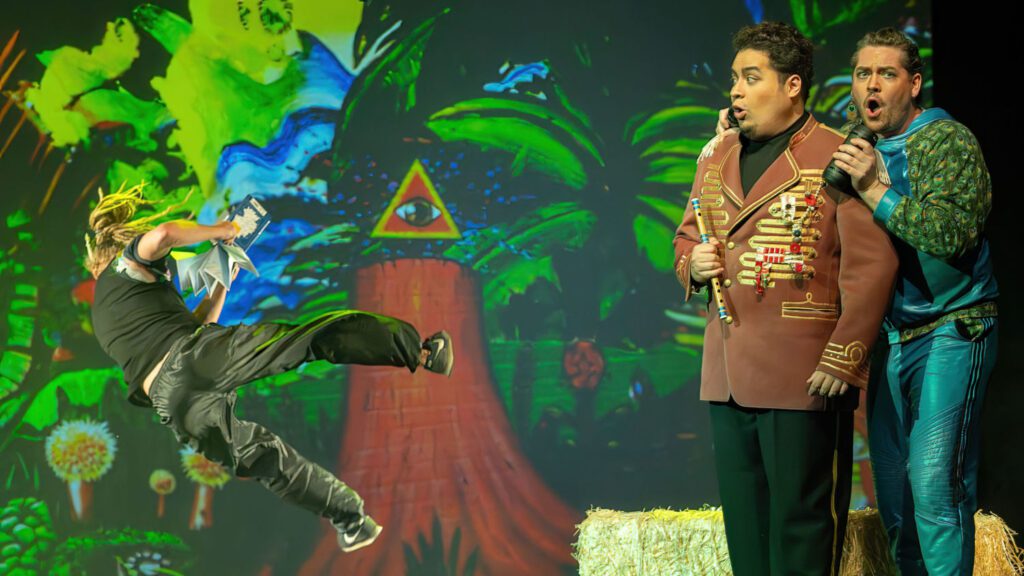 Das Objekt der allgemeinen Begierde, das in jeder Beziehung einen neuen Namen umgehängt bekommt, ist vor allem Projektionsfläche für die Wünsche und Sehnsüchte anderer. Weshalb sie das Ausstattungsduo Charles Cusick Smith und Philip Ronald Daniels immer wieder hinter Pappaufstellern verschwinden lässt, die sie zu einer Art Ankleidepuppe werden lassen. Mit Natasha Sallès als Titelheldin ist dem Haus ein echter Glücksgriff gelungen. Die brasilianische Sopranistin bringt alles mit, was es für diese herausfordernde Rolle braucht. Trotz ihrer zierlichen Erscheinung verfügt sie über eine fesselnde Bühnenpräsenz und die Spitzentöne, die sie selbst in den höchsten Lagen so nonchalant funkeln lässt, dass man vergisst, wie verzwickt dieser Klassiker der Moderne komponiert ist.