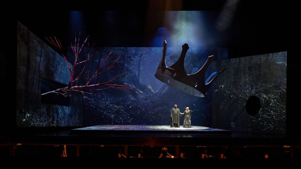 Regisseur Claus Guth setzt auf makabres Psychodrama und inszeniert mit sicherem Wirkungs-Gespür und eindringlicher Personenführung ein cineastisches Beziehungsdrama in zwei Akten, in dessen Mittelpunkt jeweils das (makabre) Spiel männlicher Dominanz über „die Frau“ als Objekt steht. Dabei greifen in Béla Bartóks „Blaubart“ die Erzählmechanismen innerer und äußerer Handlung nahtlos ineinander, Guth kokettiert mit über-realistischer Erzählweise à la Hitchcock – ähnliche Wirkung inklusive. Die sieben Türen werden zu sieben imaginären Räumen und der gutaussehende (!) Womanizer-Protagonist ist ein verzweifelt liebender, zwanghafter Frauenmörder, dem nicht nur Florian Boeschs warme, runde Baritonstimme sehr menschliche, fast schon weiche Züge verleiht (passgenaues Kostümbild: Anna Sofie Tuma). Christel Loetzsch präsentiert sich als in jeder Form adäquate Judith, singt und entwickelt sich warm in ihrer Rolle der naiven jungen Braut bis hin zur mutig Liebenden in erschütternder Selbstaufgabe. Wenn sie dann fast bockig auch den letzten seelischen Abgrund des Gatten ergründen will und sich schließlich in ihr Schicksal fügt, macht Loetzschs außerordentliche stimmliche Bandbreite sie zu einer Idealbesetzung für diese Partie voll emotionaler Extreme.