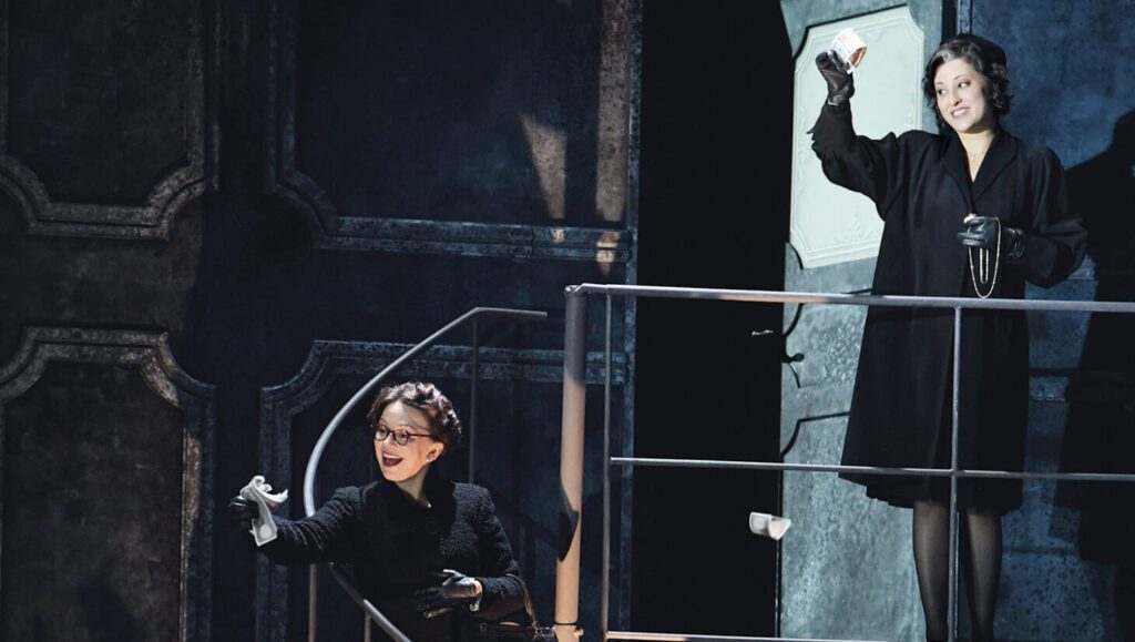 Die Königin (Anna Bonitatibus als Queen Juno) macht kurzen Prozess mit der vermeintlichen Konkurrentin, serviert sie ab und lässt ihr von diensteifrigen Höflingen die Haare entwürdigend stutzen. Neben der atmosphärischen Inspirationsquelle „Gefährliche Liebschaften“ kommt einem auch Peter Greenaways „Der Kontrakt des Zeichners“ in den Sinn. Die Entlarvung der Doppelmoral der Adeligen in ihren opulenten historischen Kostümen besorgen sie selbst. Am Ende erlaubt sich Mijnssen doch eine Pointe. Die von Jupiter gerade noch gerettete und wie eine Himmelskönigin herausgeputzte Calisto ersticht ihn. Was bei einem König schwer, bei einem Chefgott gar nicht vorstellbar ist. Immerhin hatte er vorher seinen Spaß. Auch alle anderen Protagonisten fühlen sich sichtbar wohl in dieser Kulisse und in ihrer Aufmachung. Im Stück bekommt Calisto von Jupiter am Firmament einen Platz als Sternbild. In Aix-en-Provence wird daraus ein Funksignal in die ferne Zukunft selbstbestimmter Frauen.