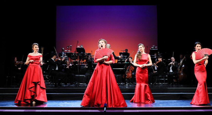 Während die kaum alternierenden Bühnenbilder auch die Tatsache widerspiegelten, dass das Auditorio Alfredo Kraus ein Konzertsaal und kein Opernhaus ist, so hätte eine etwas intensivere Personenregie der Dramatik des Geschehens gutgetan, die ja in diesem Klassiker Cileas durchaus beachtlich ist. Allzu oft schienen die Sänger sich selbst überlassen, standen reglos an der Rampe. Sie machten aber immer wieder das Beste aus der jeweiligen Situation, allen voran María José Siri in der Titelrolle der Adriana. Sie war in der Tat nicht nur in ihrer Rolle als Primadonna, sondern auch im Auditorio der Star des Abends – mit einem klangschönen, fülligen und ausdrucksvollen Sopran sowie der gekonnten Gestik der Primadonna, bis diese schließlich einer ebenso überzeugenden ihres nahenden Endes wich. Schon die berühmte Auftrittsarie „Ecco: respiro appena …“ war ein absoluter Höhepunkt mit lang gehaltenem Finalton und beeindruckenden Piani wie Höhen. Das Publikum jubelte mit vielfachem Brava! Sergio Escobar konnte als Maurizio zwar mit einem kraftvollen und stabilen Tenor bei guten Höhen mithalten, darstellerisch blieb er aber zu steif und uncharismatisch. Silvia Tro Santafé gab die Principessa di Boullion mit einem farbigen Mezzo und guter Mimik, jedoch nicht ganz der emotionalen Durchschlagskraft ihrer Kontrahentin entsprechend. Eine sehr gute stimmliche Leistung bot Youngjun Park als Michonnet. Ferner sind noch In Sung Sim als Principe di Boullion und Francisco Corujo als Abbé de Chazeuil zu nennen.
