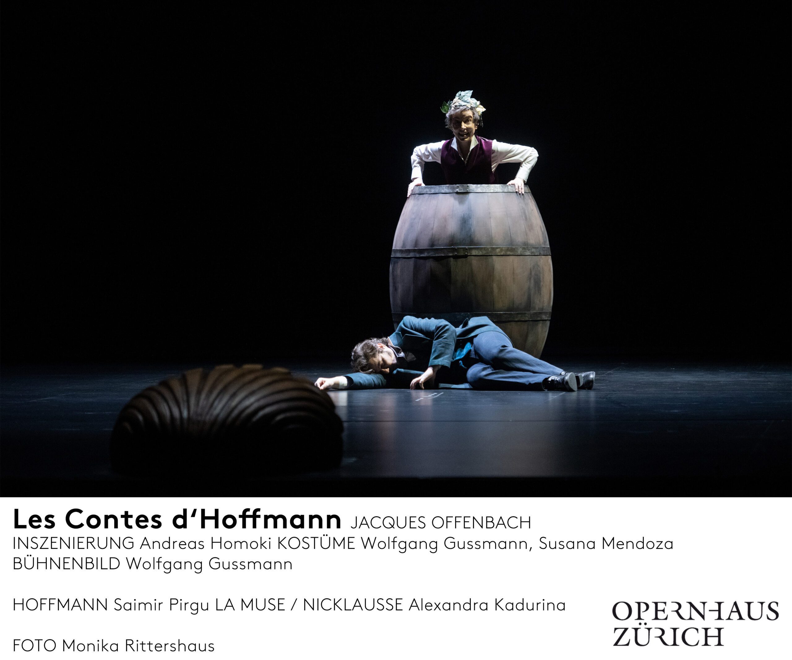 Nach dem lauten Blätterrauschen rund um die Demission von Operndirektor Michael Fichtenholz soll sie im Idealfall für frische Schlagzeilen sorgen, die neue Produktion von „Les contes d’Hoffmann“ am Opernhaus Zürich. Der ebenfalls in Bedrängnis geratene Haus-Chef Andreas Homoki bringt als Regisseur das Opus summum des Kölner Parisers heraus, nur elf Jahre nach der erfolgreichen letzten Zürcher Premiere von Offenbachs einhundertzweiter (!) und letzter Oper. Nach dem Premierenstream folgen, Stand Redaktionsschluss, vier „echte“ Vorstellungen im Mai. Er interessiere sich für den Spaß in so vielen Situationen, die sich der ausgebuffte Theaterprofi Offenbach da wirkungsvoll erdacht habe, erklärt Homoki; der Faust’sche Theaterdirektor hätte sofort zugestimmt. Doch diese Spaß-Situationen stehen dann zwei Akte lang so schablonenhaft verhandelt, lose und steif nebeneinander, dass die Nummernoper zur Revue wird. Der fehlt freilich die Showtreppe: Ein großes Fass und das erhöhte, zur berühmten Barcarole unfehlbar schaukelnde Bühnentrapez in der Mitte (Wolfgang Gussmann) sind karge Bühnenbildkost und können eine stringente Entwicklung von Figuren und Plot nicht ersetzen. Auch die Kostüme strahlen jedenfalls am Bildschirm mehr Fundus aus denn Grand opéra.