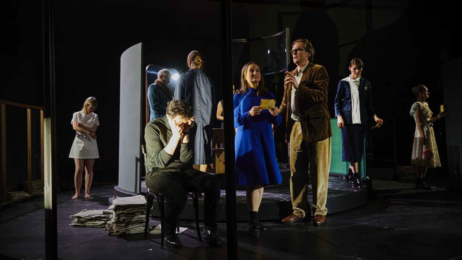 Mit Wahrheit und Schein befasst sich die Semperoper Dresden in Aribert Reimanns Kammeroper „Die Gespenstersonate“ nach dem gleichnamigen Schauspiel des schwedischen Dramatikers August Strindberg. Es ist das zweite Werk von Reimann, das sich nach dem „Traumspiel“ von 1965 auf Strindbergs Dramen stützt. Dabei vermischt sich Gespenstisches und Reales zu einem untrennbaren, nicht mehr zu unterscheidenden Ganzen. In der Dresdner Erstaufführung agieren die Sängerinnen und Sänger auf einer leeren Drehbühne, direkt vor den Augen des auf drei Reihen in Semper Zwei, der kleinen Spielstätte der Semperoper, sitzenden Publikums. Dafür wählt Judith Adam verschiebbare Wände, die sich auf drei übereinanderliegenden Podien befinden und differenzierte Einblicke ins Geschehen ermöglichen. Die meisten Kostüme gleichen der Alltagskleidung, teilweise werden sie auch auf die Funktion der Figur, wie die Uniform des Obersten, bezogen. Requisiten kommen nur spärlich zum Einsatz, so eine Parfümflasche, ein Stapel Zeitungen oder der Vogelkäfig der Mumie.