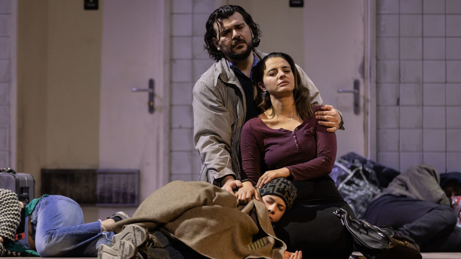 Das größere Problem des Abends liegt aber im Gesang. Jost hat für alle Figuren kantable Legatolinien komponiert, die zu schön klingen, um wahr zu sein. Kartal Karagedik als Haydar, Rihab Chaieb als Meryem, Ivan Thirion als Lkw-Fahrer Matteo, Denzil Delaere als Mafioso Haci Baba, Julieth Lozano als Ärztin – ob im versifften U-Bahnhof, in der Fahrerkabine oder in der Bar: Jede und jeder singt mit vollem Vibrato und sattem Ton. Keine Figur wird durch ihre Stimme charakterisiert. Und auch die extremen körperlichen und psychischen Belastungen dieser Flucht hinterlassen keine Spuren. Nur Ulysse Liechti als Mehmed Ali, den die Flucht das Leben kostet, hat mit seiner reinen, fragilen Knabenstimme einen besonderen Ton.