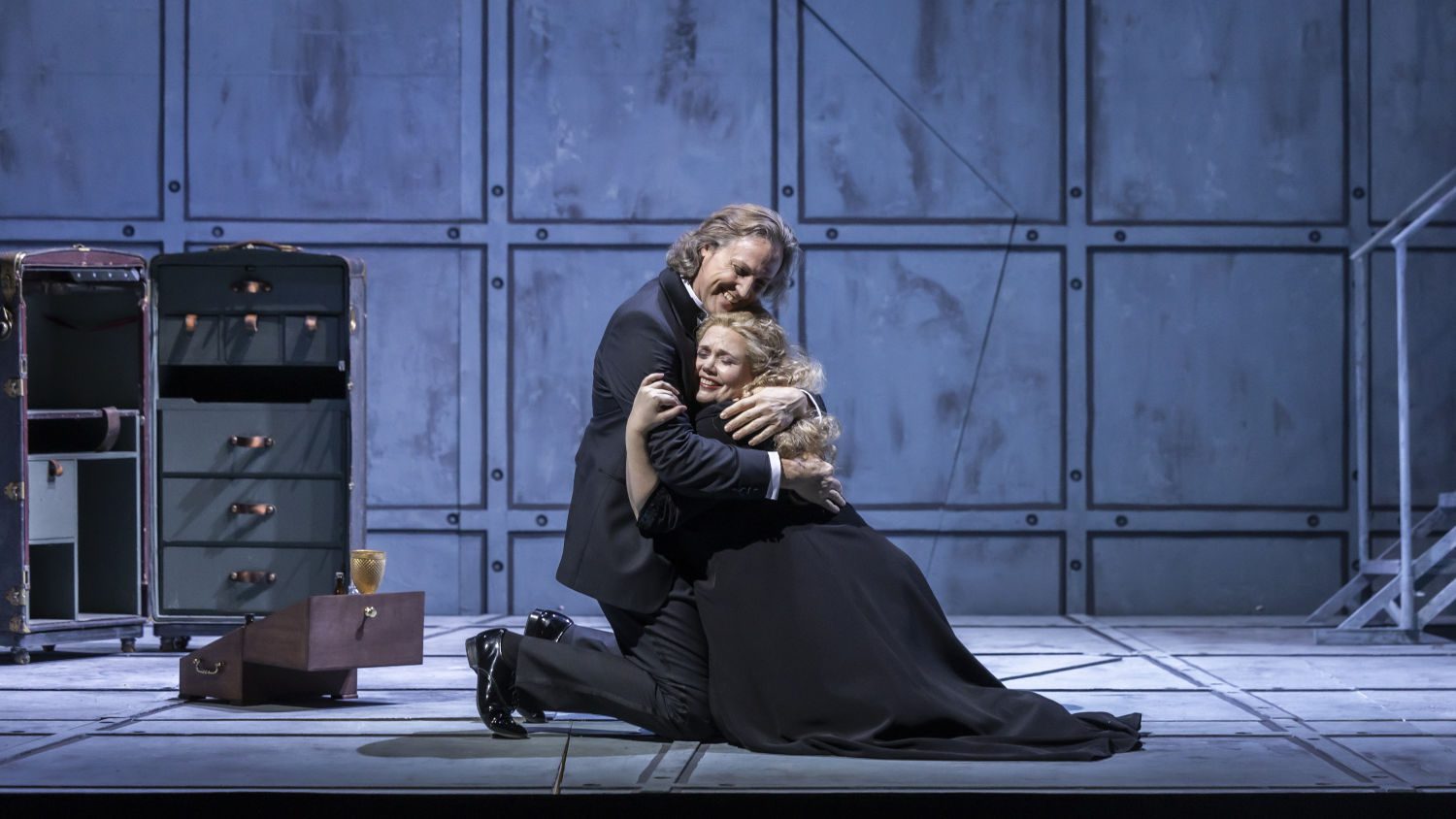 Schlicht und einfach auf die Ideen Wagners abstellend, sieht man in einen breiten Schiffsrumpf, nicht so voll gerümpelt wie jener in Bayreuth im letzten Jahr. Hier sind nur zwei Sessel für Tristan und Isolde und ein paar Umzugskisten zu sehen. Dafür weist der Rumpf in der Mitte einen großen Spalt auf, der sich öffnet oder schließt, je nachdem, ob es auf der Bühne zu einer harmonischen Situation, also einer Annäherung zwischen Tristan und Isolde kommt oder diese Harmonie gestört ist. Dann sieht man einen großen Spalt, der sich nahezu bedrohlich öffnet. Das ist’s eigentlich schon mit der Optik, die durch eine ausgefeilte Personenregie ergänzt wird.