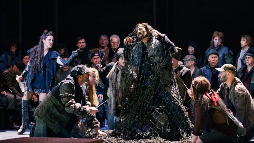 Gegen das Zeitphänomen der digitalen Entfremdung sind diese üppige Märchenoper und diese Produktion ein wunderbares Gegenmittel. Noch nicht allzu häufig, aber regelmäßig erinnern sich Theater inzwischen wieder an Engelbert Humperdincks neben „Hänsel und Gretel“ zweiten großen Erfolg „Königskinder“ in der Opernfassung für New York 1910. Das Experiment eines Melodrams mit in den Noten fixierten Sprechhöhen hatte sich im Münchner Nationaltheater 1897 als zu schwieriger Brocken erwiesen. Die Gänsemagd und der Königssohn überwinden in Elsa Bernstein-Porges’ Schauspiel soziale Schranken, scheitern aber an der im primitiven Vorteilsdenken befangenen Umwelt. Deshalb gehen beide zugrunde. Damit drängen in dieses Märchen auch immer wieder die Sozialmiseren vor 1914.