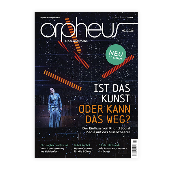 Ist das Kunst oder kann das weg? Der Einfluss von KI und Social Media auf das Musiktheater | Vom Countertenor ins Heldenfach: Interview mit Christopher Sokolowski | Talbot Runhof – Haute Couture für die Bühne | Sopranistin Nikola Hillebrand über Operette, Karriere und künstlerische Freiheit | Wie klingt Augsburg-Oberhausen? Einblicke in eine Community Oper im multikulturellen Stadtteil | u.v.m.