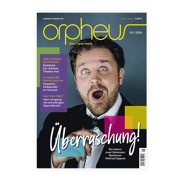Jenseits des Fachs: Baritenor Michael Spyres | Darf man das?! Political Correctness in der Oper | Mehr Zuschauer als Einwohner: Einblicke ins „kleine“ Theater Hof | Der unsichtbare Lehrer: eine Hommage an Antonio Salieri | Der lachende Melancholiker: zum 50. Todestag von Friedrich Hollaender | u.v.m.